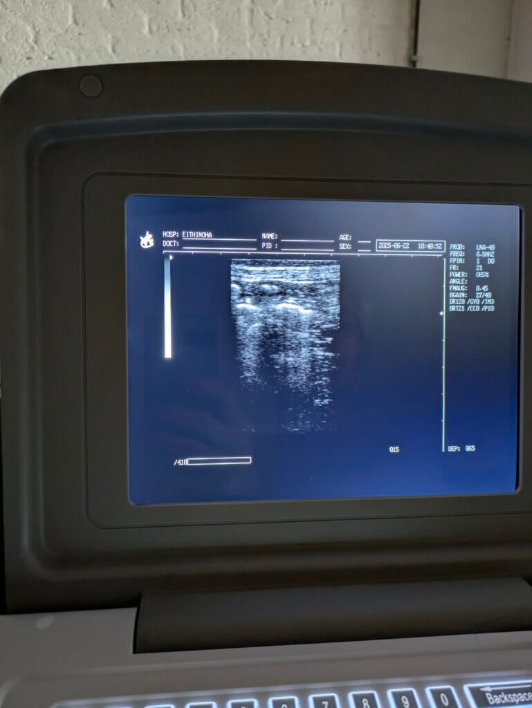 32 dagen na de dekking waren we nog steeds niet zeker. Wat te doen, afwachten? Of toch een echo? Jikke is best wel gestresst bij de dierenarts dus dat wilde ik haar eigenlijk niet aandoen. Toen bood zich de ideale oplossing aan, een collega fokker heeft zelf een echo apparaat en we mochten bij haar langskomen! Stressvrij in huiselijke setting de echo bij Jikke kunnen doen en ja hoor! 3 pups te zien! 🥳 Dat was wel een opluchting.